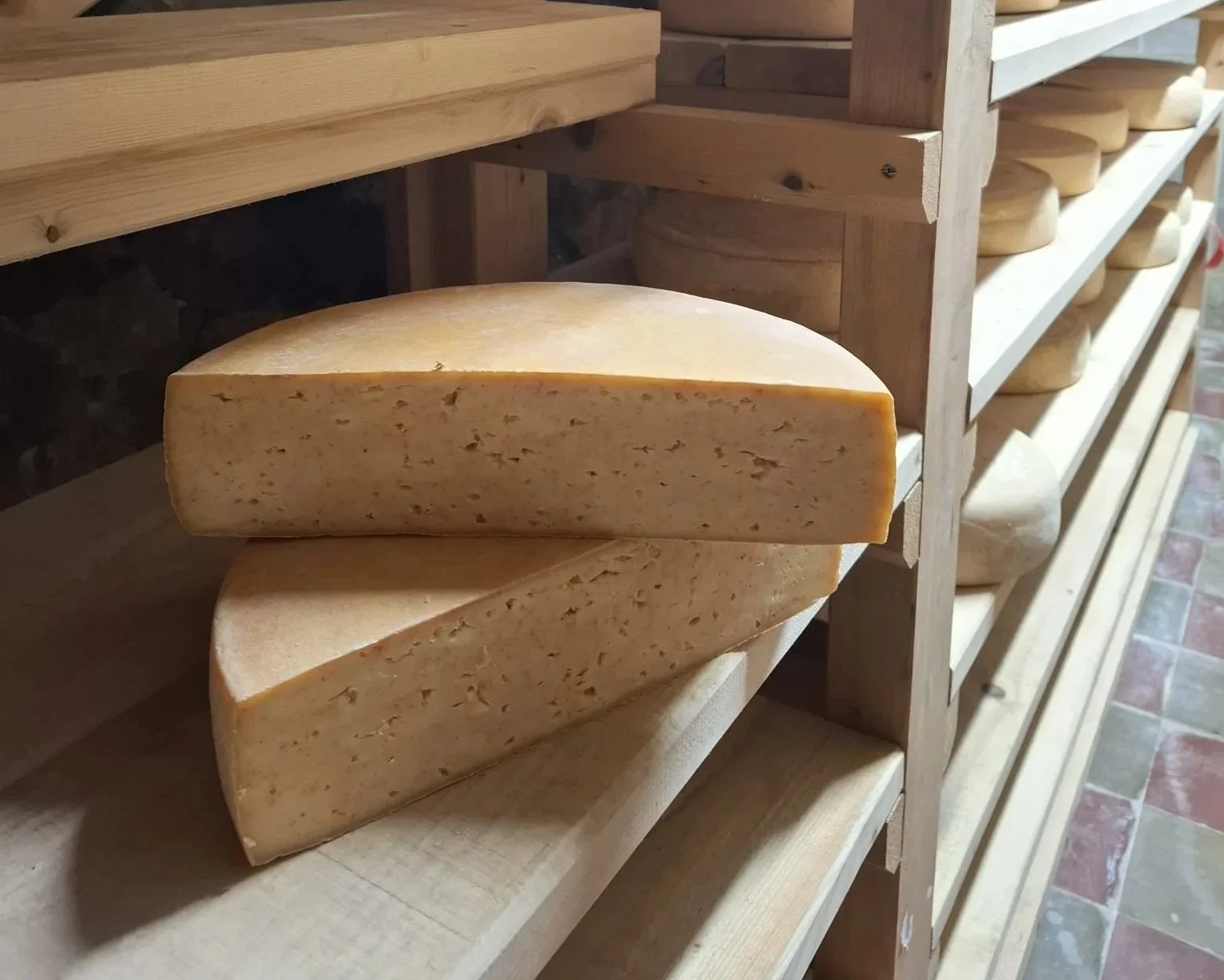 Manu fabrique ses fromages dans son atelier à Herve, puis les affine dans des caves enterrées. Ces caves offrent des conditions idéales pour l’affinage : une humidité naturelle et une température fraîche.